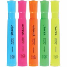 Universal Highlighter - Fluorescent Blue, Fluorescent Green, Fluorescent Pink, Fluorescent Orange, Fluorescent Yellow Ink - Blue Round, Green, Orange, Pink, Yellow Barrel - 5 / Set